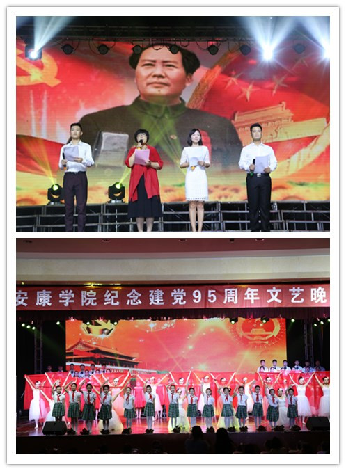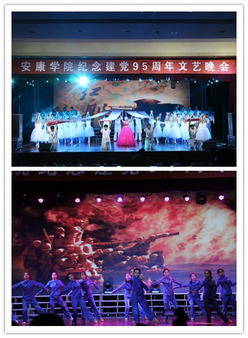 党旗如画,忆光辉历程;岁月如歌,颂丰功伟绩。 为庆祝建党95周年、弘扬井冈山精神,结合学校深入开展“两学一做”学习教育和全面推进党建工作,6月28日晚19:30,ac米兰在江南校区大礼堂隆重举行“共筑中国梦”庆祝建党95周年文艺晚会。学校领导王国良、陈刚、胡鸿晓、闵小平、杨行玉、向纪明,各党政职能部门和二级学院负责同志、教师代表和学生代表千余人欢聚一堂,热烈庆祝中国共产党建党95周年。
