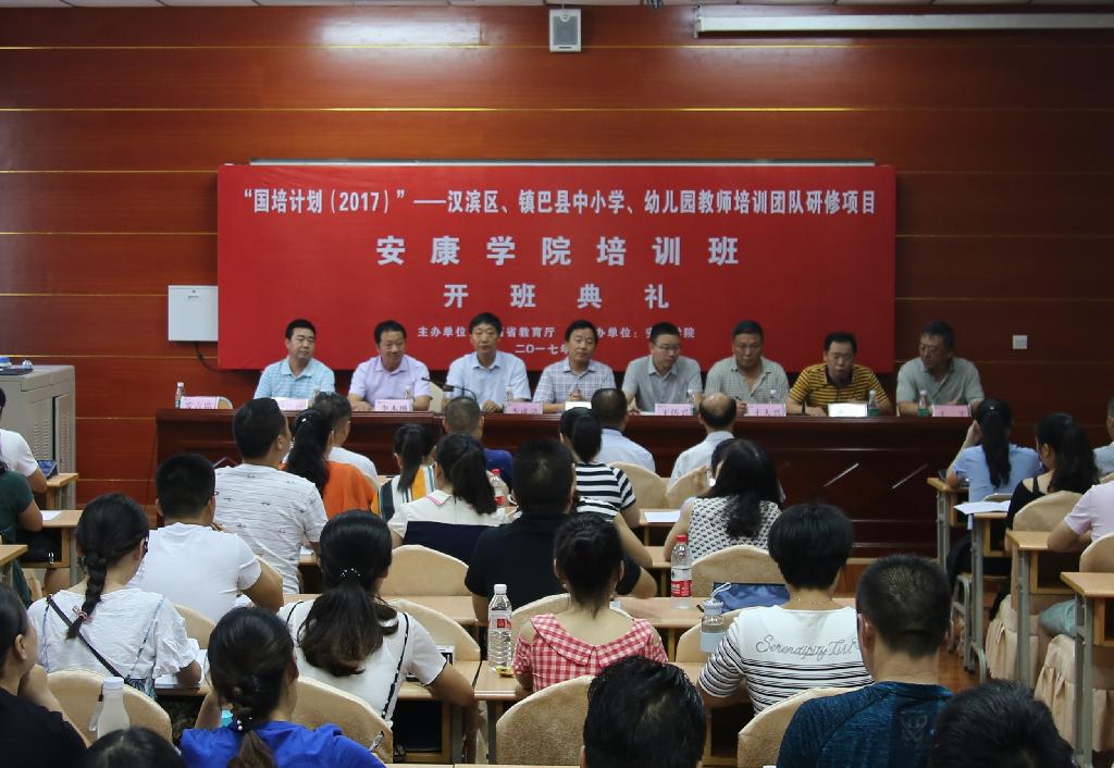 8月18日上午,由省教育厅主办、ac米兰承办的“国培计划(2017)”——陕西省(汉滨区、镇巴县)中小学、幼儿园教师培训团队研修项目ac米兰官方网站培训班开班典礼在ac米兰1018教室隆重举行。学校副校长钟生海、汉中市镇巴县教育局副局长王传兴、镇巴县教研室主任王大兴、安康市汉滨区教育局副局长李成清、汉滨区教师进修学校校长李本琳、两项目区县及白河县(结对帮扶县)参训学员百余人参加了开班典礼。开班典礼由继续教育学院院长谯延富主持。
