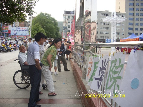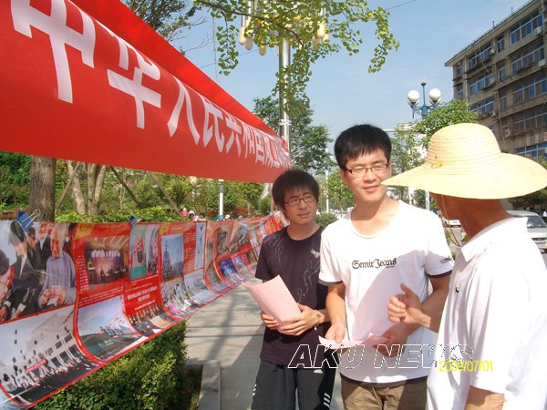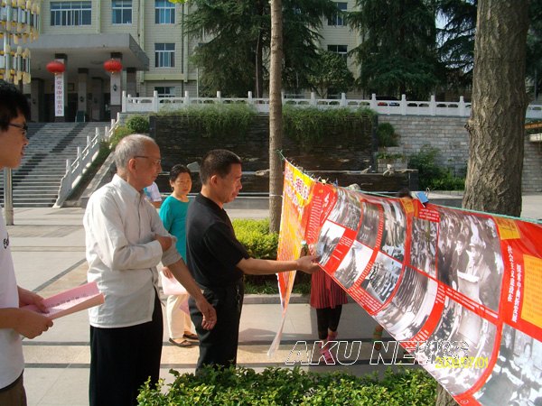 7月1日早晨,由政治与历史系08级入党积极分子组成的建国60周年成就调研宣讲社会实践服务队在其指导老师孙敏带领下,在安康市市委前广场进行了义务宣讲和建国60年的成就展示。