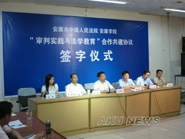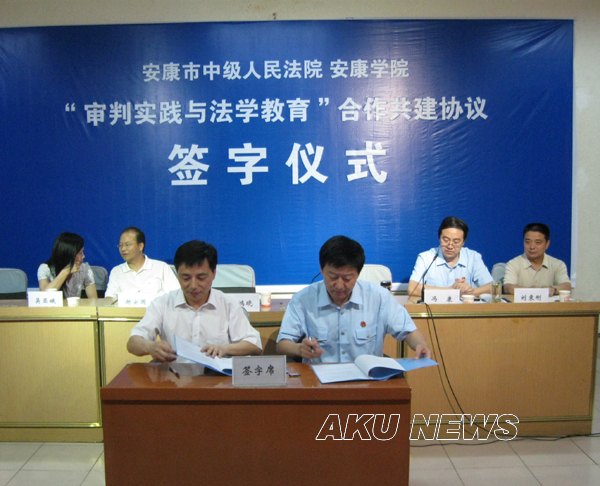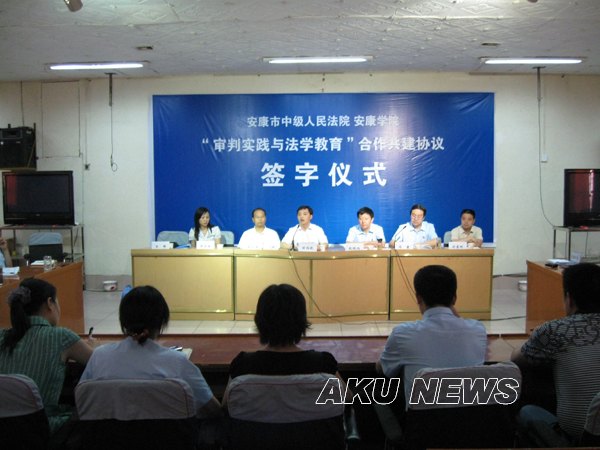 为了切实增强高校法学教育的实践性和针对性,进一步推进学习型法院创建工作,7月7日下午,ac米兰官方网站与安康市中级人民法院在安康中院会议厅隆重举行了共建法学教育和法治教育实践基地签约和揭牌仪式。ac米兰官方网站党委副书记胡鸿晓,政史系党总支书记谢安国,政史系副主任吴亚娥,安康中院常务副院长赵晓旭、副院长冯康和政治部主任刘来刚出席了仪式,安康中院“天平”青年读书社的青年法官参加了仪式。仪式由安康中院副院长冯康主持。