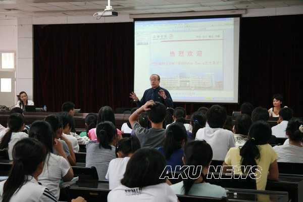 下午4时30分,在图书馆6楼报告厅,Peter Davis先生为我院学生作了一场生动活泼的留学说明会。说明会上,Peter Davis就东西方文化的差异、留学的优势、如何达到留学的要求、签证、费用、优惠政策等学生关心的问题进行了说明,同时回答了同学们的问题。