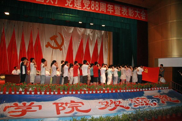 6月27日下午,我院在西校区大礼堂隆重召开庆祝建党88周年暨表彰大会。学院党委成员、教职工党员、学生党员、离退休党员代表、入党积极分子代表1000余人参加了大会。大会由党委副书记胡鸿晓主持。