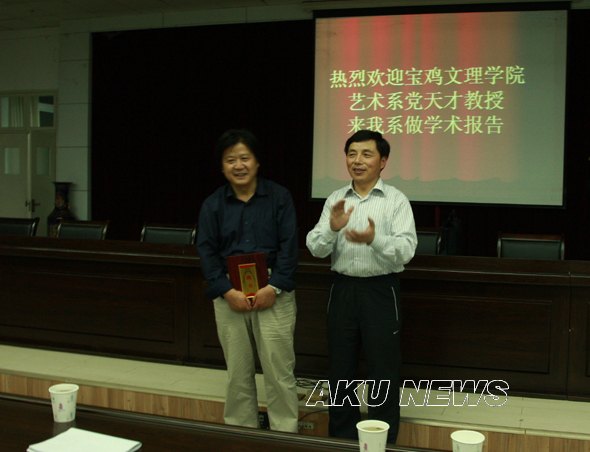 晚上20:00,在图书馆六楼报告厅党天才教授为我院艺术系师生做了一场关于中国水彩画的发源与发展趋势的报告会,报告会由艺术系党总支书记冯丰收主持。院党委副书记胡鸿晓出席了报告会并为党天才教授颁发了ac米兰官方网站客座教授的聘书。