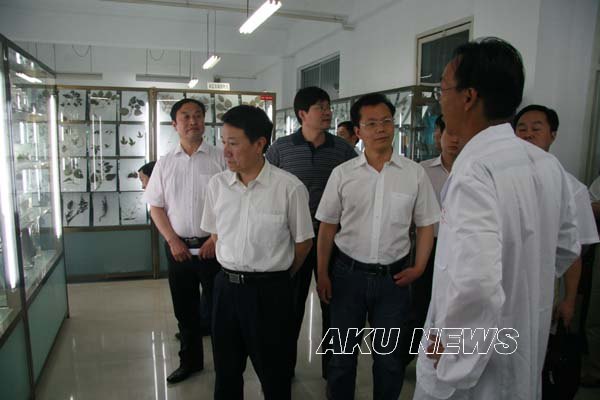 张炜厅长一行在院长王兴林、副院长向纪明的陪同下参观了我院恒口蚕桑科研基地、陈少默纪念馆、富硒食品检验室和标本与生物实验室。