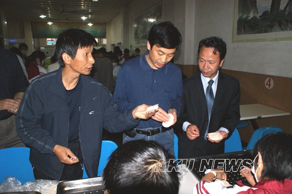 在集团和数学系领导的带领下,同学们参观了食堂的洗碗消毒间、留样室、蔬菜肉类加工间、仓库等场所。参观完食堂各工作流程后,同学们与后勤集团的领导和食堂一线员工代表进行了座谈。畅谈了参观食堂后的感受,表达了对饮食服务工作人员辛勤劳动的感激之情,同时,表示要把参观的所见所闻告诉其他的同学,让同学们放心地在自己家的食堂就餐,让所有的同学都来关心爱护自己的食堂。