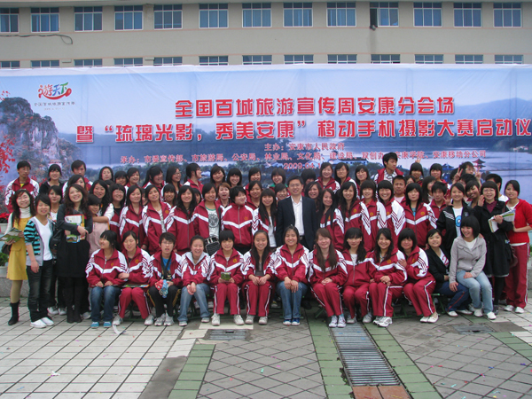 我院经济与管理系承担本次启动仪式上安康四大旅游景点的推介这个重头戏,在系主任余谦、副主任查芳以及旅游管理教研室主任李丽和胡晓玲老师的带领下,由07、08级旅游管理、08级国土资源管理专业的同学在会场组成了一个百人方阵。启动仪式上,旅游管理专业的易瑞红、董飞等四名学生为广大市民进行了瀛湖、南宫山等安康旅游风景区的介绍,获得广大市民的一致好评。 张媛等学生的歌舞表演《绽放》彰显出我院大学生青春活力。