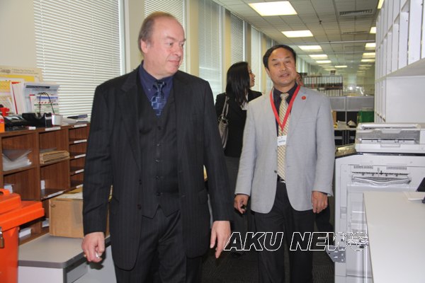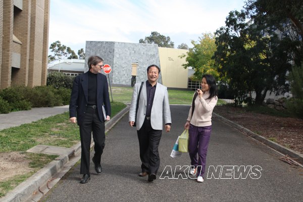 王院长在澳大利亚拉筹伯大学国际事务部主任和我院访问学者陈苏维陪同下参观校园