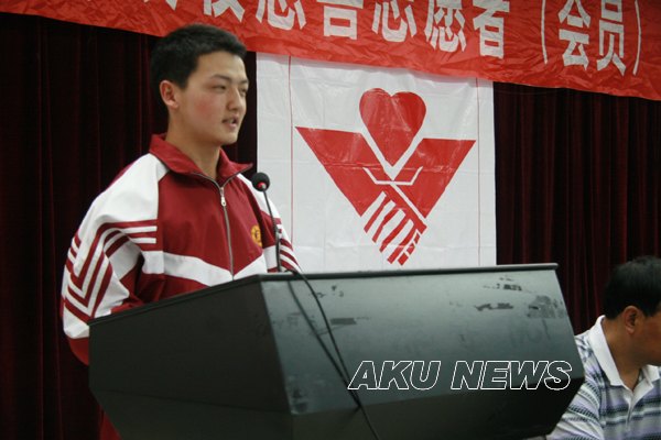 我院化学化工系学生张龙代表新会员做了发言。“感谢安康市慈善协会和ac米兰官方网站能推荐和吸收我成为一名慈善志愿者。自2008年进入ac米兰官方网站化学化工系以来,通过参加我系开展的许多社会公益活动,使得我明白了许多做人的道理和大学生所要肩负的社会责任”,“我们一定要把这份爱心圣火薪火相传,永不熄灭。”