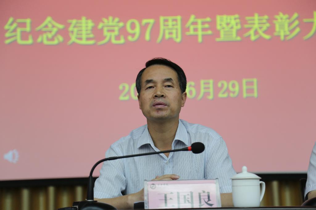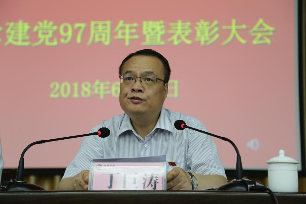6月29日下午,学校在江南校区图书馆六楼报告厅隆重举行庆祝建党97周年暨表彰大会。学校领导王国良、丁巨涛、杨行玉、向纪明、钟生海、张东红出席会议并在主席台就座。全校处级领导干部、党总支委员会委员、直属党支部委员、受表彰的优秀共产党员及优秀党务工作者等200余人参加了会议。会议由校长丁巨涛主持。