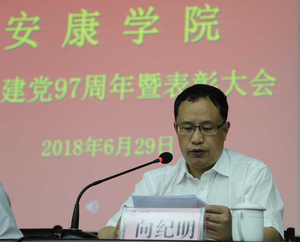 党委副书记杨行玉宣读了学校党委《关于表彰先进基层党组织、优秀共产党员、优秀党务工作者的决定》;副校长向纪明宣读了学校党委《关于表彰2017年度“规范化党支部建设示范点”的决定》。与会校领导为获奖基层党组织、优秀共产党员和优秀党务工作者代表颁发了奖牌和荣誉证书。