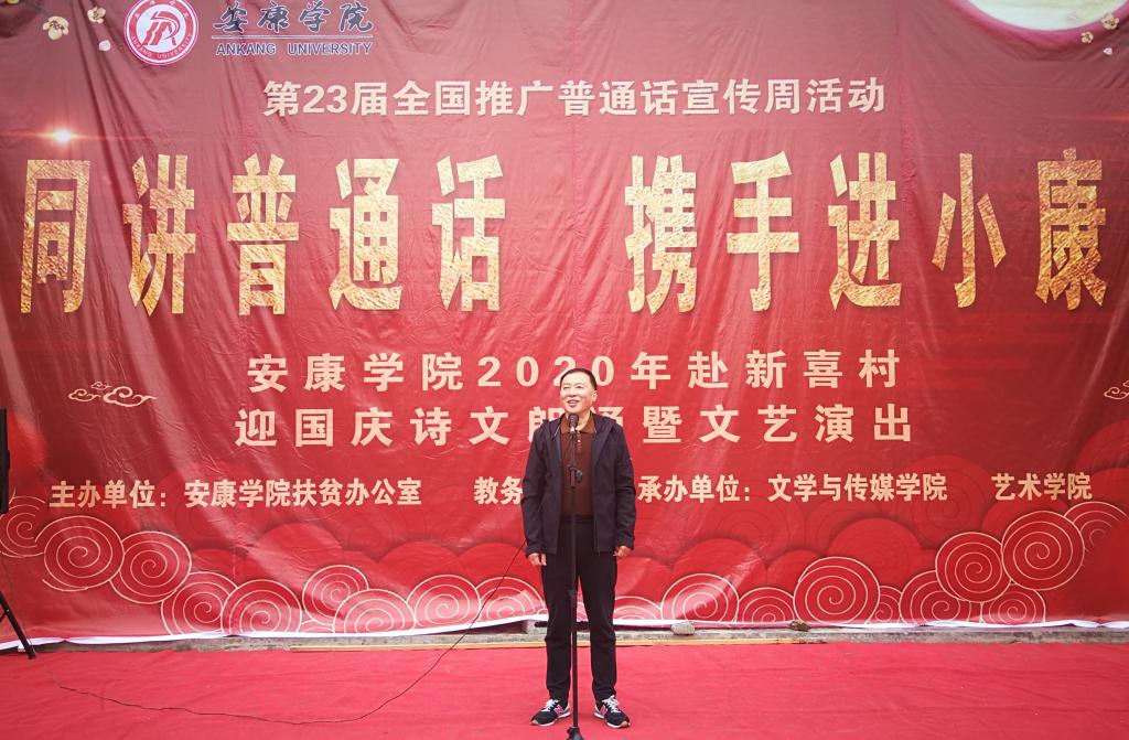 为生动展示新喜村脱贫攻坚奋斗历程,9月25日,ac米兰师生赴岚皋县民主镇新喜村开展了以“同讲普通话,携手进小康”为主题的文艺演出活动。
