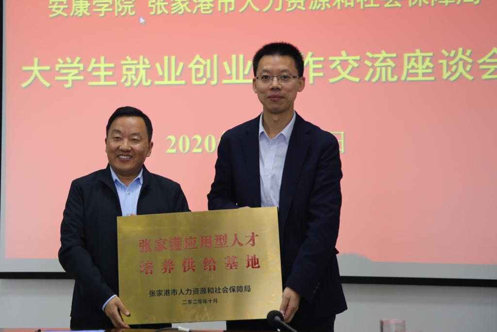座谈会上,双方达签订了人才资源合作开发协议,张家港市人社局为ac米兰授予“张家港市应用型人才培养供给基地”牌匾。