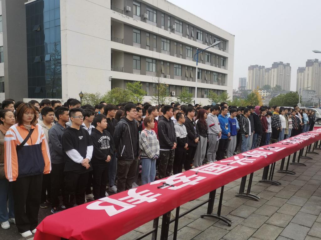 活动中,师生在签名横幅上签名,留下自己厉行节约、反对浪费的承诺。