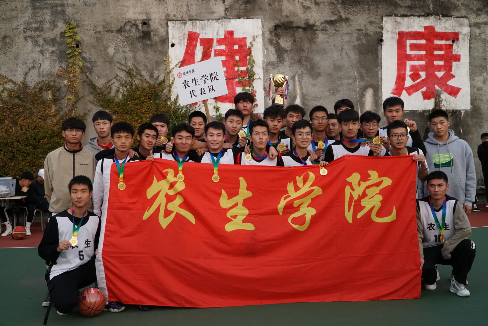 据悉,本届篮球赛共有来自13个二级学院共计26支代表队、400余名2020级新生参与。经过半个多月紧张激烈的角逐,农生学院男子代表队、体育学院男子代表队(并列)、外语学院女子代表队、体育学院女子代表队(并列)获得冠军;艺术学院男子代表队、艺术学院女子代表队获得亚军;电信学院男子代表队、教育学院女子代表队获得季军;数统学院、教育学院、电信学院、马克思主义学院获得“最佳后援团”称号;王艺等15名裁判获“优秀裁判员”称号;陈昱江等15名学生获“优秀工作者”称号。