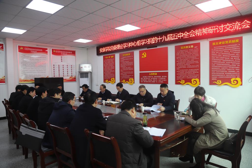 王国良做了要求讲话。他指出,党的十九届五中全会是我党在全面建成小康社会胜利在望、全面建设社会主义现代化国家新征程即将开启的重要历史时刻召开的一次具有里程碑意义的会议。习近平总书记的重要讲话为推动国家高质量发展、构建新发展格局、全面建设社会主义现代化国家提供了行动指南和根本遵循,全会通过的《建议》是开启全面建设社会主义现代化国家新征程、向着第二个百年奋斗目标奋进的纲领性文件,为今后五年乃至更长时期国家经济社会发展指明了方向。他要求:一是要将学习宣传贯彻好全会精神作为当前和今后一个时期的重要政治任务,按照省委安排部署和省教育工委要求,结合学校实际,认真组织宣讲团,促进全会精神在全校师生中入脑入心,领导干部要率先垂范,先学一步、学深一点,宣传部、学工部和马克思主义学院要配合做好宣讲安排。二是要以全会精神为引领,结合贯彻落实习近平总书记关于教育的重要论述,科学谋划学校“十四五”规划,坚持问题导向、目标导向、需求导向,在“创新发展、高质量发展”上下功夫,要进一步解放思想,结合学校“两大战略目标”和学校重点工作,以立德树人为根本,以内涵发展、特色发展为主线,增强服务地方经济社会发展的能力,推动产教融合,真抓实干,不断提升人才培养质量,促进学校高质量发展、又好又快发展。