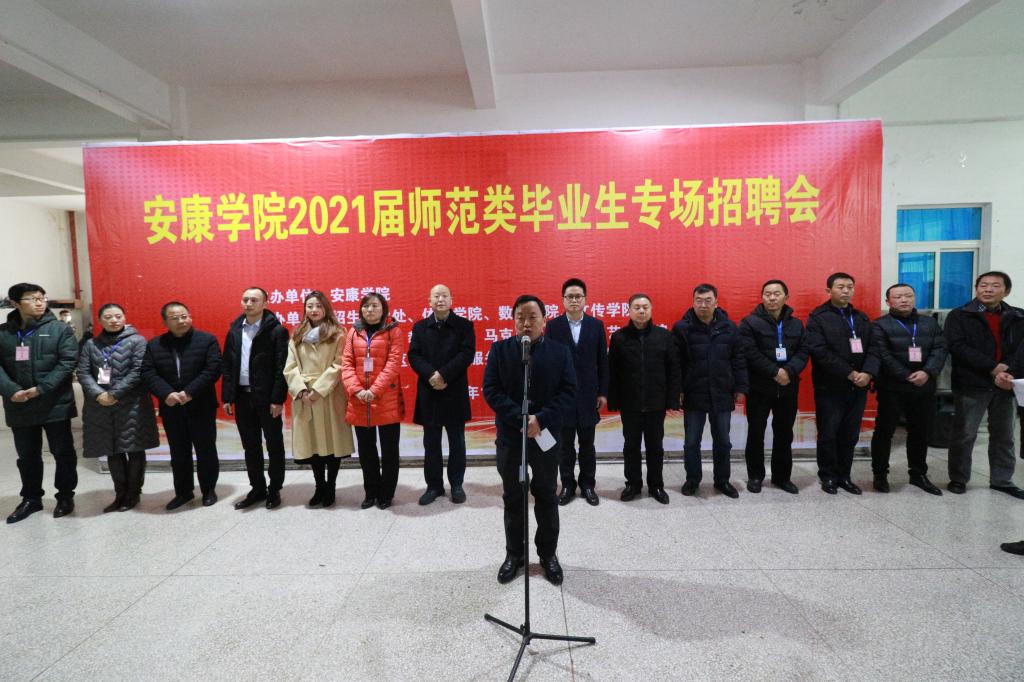 12月5日,ac米兰官方网站2021届师范类毕业生专场招聘会在江南校区体育馆举行。本次招聘会由ac米兰官方网站主办,招就处、体育学院、数统学院、文传学院、外语学院、艺术学院、马克思主义学院、教育学院承办,得到了安康高新区就业创业服务局、安康市人力资源服务产业园的大力支持。学校副校长钟生海,招就处、保卫处、各承办二级学院党总支书记、用人单位代表及2021届毕业生参加了开幕式。