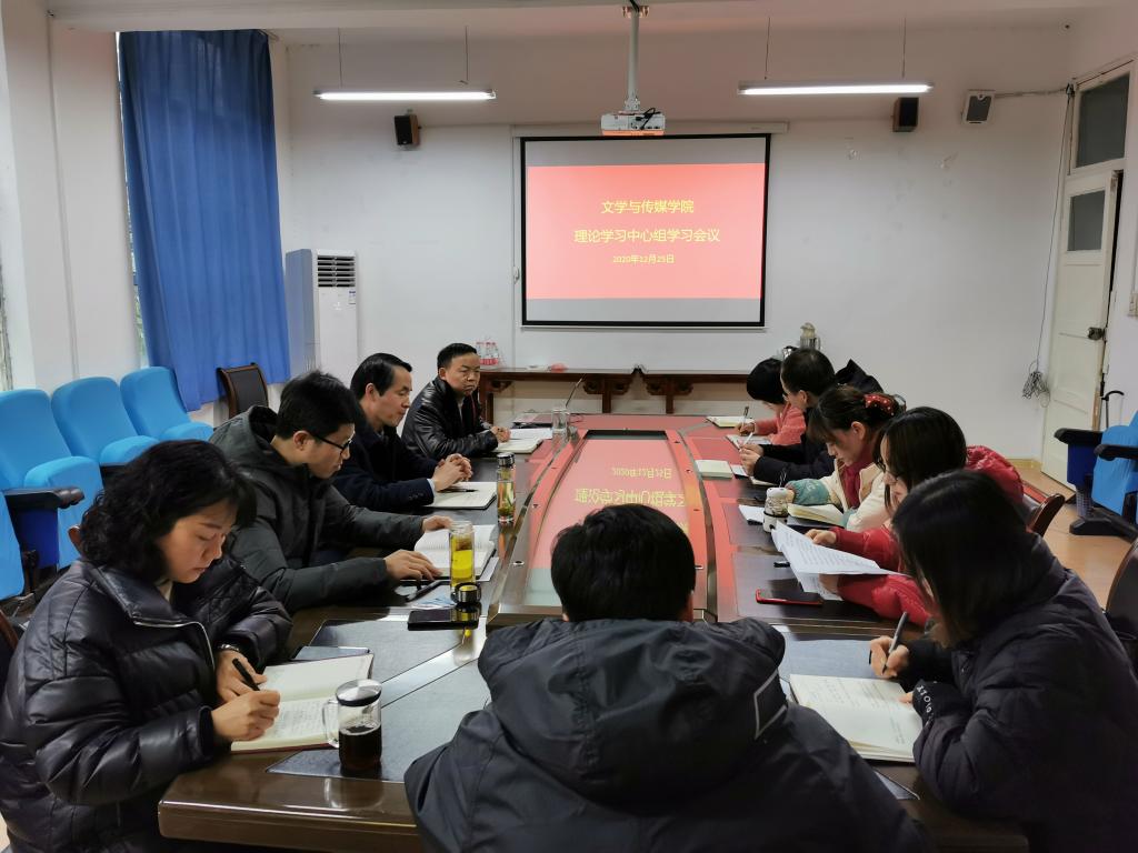 文传学院党总支书记芦伟对文传学院学习宣传、贯彻落实党的十九届五中全会精神作了简要安排,强调学院理论学习中心组要发挥学习头雁作用,带领全院把学习党的十九届五中全会精神不断引向深入。