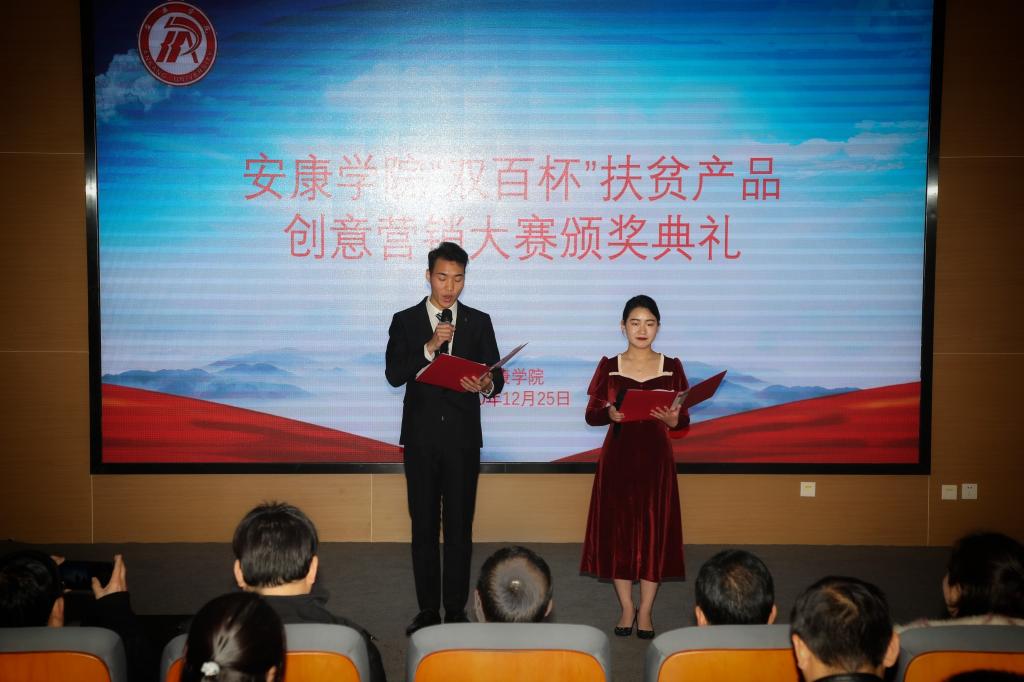 为认真贯彻落实习近平总书记关于开展消费扶贫行动的重要指示精神,充分发挥ac米兰创新创意人才优势,助力帮扶地区特色产业持续发展和巩固脱贫攻坚成果,12月25日,ac米兰在江北校区图书馆学术报告厅举办ac米兰官方网站首届“双百杯”扶贫产品创意营销大赛颁奖典礼。党委副书记胡波,副校长钟生海,白河农业局总农艺师金剑,民主镇副镇长张文,6家企业代表,学校相关职能部门和二级学院负责人以及获奖团队代表参加了本次活动。