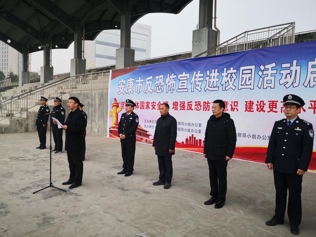 为切实增强全民反恐防范意识,打好反恐人民战争,有效应对暴恐袭击事件,加强平安安康建设,根据国家反恐办、省反恐办《关于组织反恐怖宣传教育进校园活动的通知》要求,12月28日上午,安康市反恐怖宣传进校园活动启动仪式在ac米兰江北校区操场举行。市反恐办、市公安局、市教体局、ac米兰官方网站、安康职业技术学院相关负责人及学生代表共计500余人参加了启动仪式。启动仪式由市公安局反恐支队支队长张涛主持。