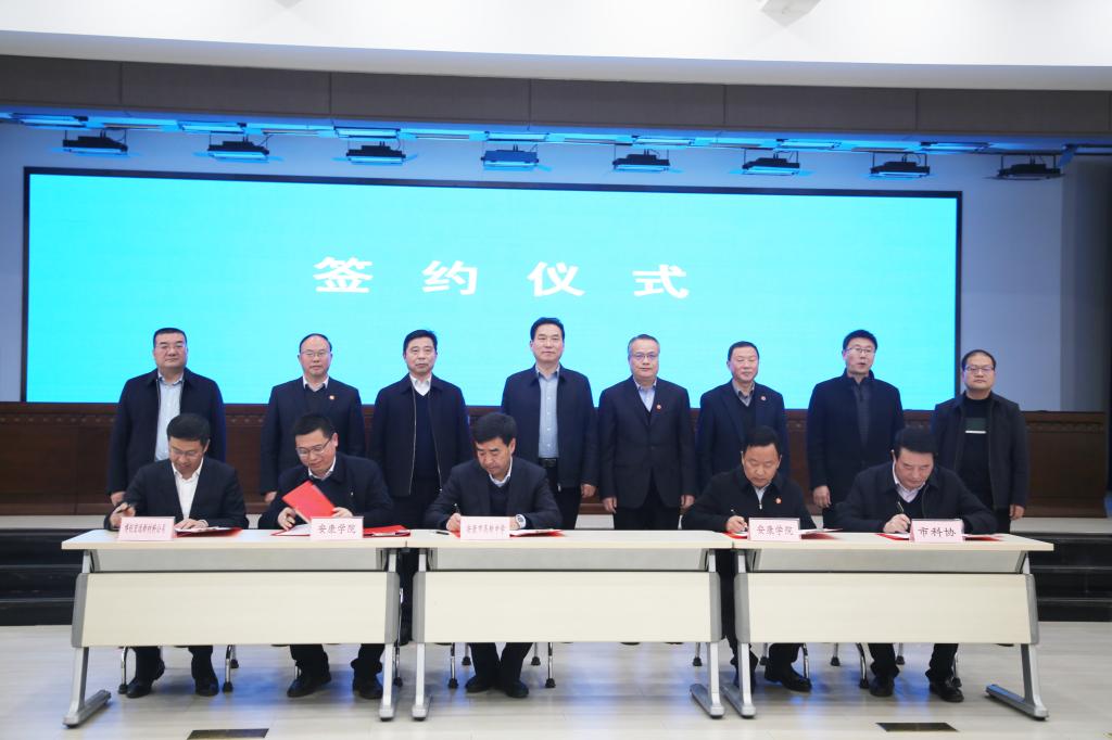 丁巨涛代表学校向“十三五”以来安康经济社会发展连续领跑全省追赶超越的发展态势表示祝贺和敬意,对市委市政府及相关部门长期以来对学校建设发展给予的大力支持和帮助表示衷心感谢。他指出,“十三五”期间ac米兰官方网站人团结奋进、攻坚克难、砥砺前行,教学质量不断提升,学科及科研工作取得进步,师资队伍结构得到优化,学校事业取得了新成绩。他强调,服务经济社会发展是高校办学的基本职能之一,ac米兰始终坚持“三服务”办学方向,坚持走地方性、应用型、开放式的办学道路。为更好地提升服务地方工作能力和水平,助力安康经济社会高质量发展,学校将进一步增强服务意识,勇担服务地方使命;进一步优化资源配置,提升服务社会能力;进一步对接地方需求,优化学科专业结构;进一步加强制度建设,激发社会服务活力。丁巨涛表示,ac米兰官方网站将围绕建设有特色、高品质一流应用型本科院校奋斗目标,积极践行现代大学使命,落实“十四五”服务安康行动计划,深化校地合作,主动融入和服务安康发展,不忘初心,牢记使命,只争朝夕,真抓实干,在新征程上奋力书写服务地方工作精彩华章,为安康建设西北生态经济强市做出更大的贡献,以优异的成绩庆祝中国共产党成立100周年。