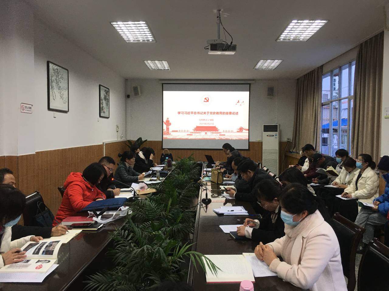 会上,全院教师围绕习近平总书记关于开展党史学习教育的重要讲话展开了热烈讨论,王晓霞副院长从“为什么要学习党的历史”、“从党的历史中学习什么”、“高校思政课教师学习党的历史要达到什么目的”三个方面进行了分享;学生党支部书记陈卓结合工作实践,从将党史教育与专业课教育深度融合,以生动活泼的形式开展党史教育,立足安康实际,深入发掘地方红色文化资源,潜移默化地开展党史教育三方面淡了自身体会:教工第二党支部书记韩艳梅以《用深入的党史学习激发持续深厚的育人之力》为题,从“学习正心,树立正确的党史观”“学以致用,切实做好教学工作”“学以创新、不断增强党史学习实效性”三个方面进行了交流。与会教师纷纷表示:通过这次学习,感触良多,今后将继续牢记初心使命、坚定信仰信念,积极开展党史学习教育,把革命精神内化于心、外化于行,通过把党的成功经验坚守好、把党的优良传统发扬好,引导学生真正做到明理、增信、崇德和力行,努力培养学生成长为担当民族复兴大任的时代新人。