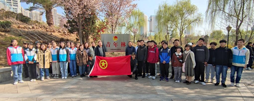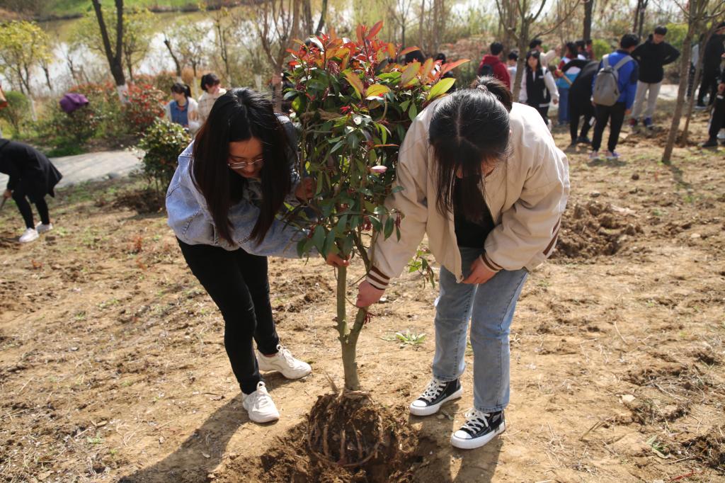 植树现场,青年志愿者严格按照技术人员的指导,规范操作,共计栽种樱花、石楠、桂花等树木100棵。志愿者们对树苗进行了挂牌认养,并将这片树林命名为“青年林”。