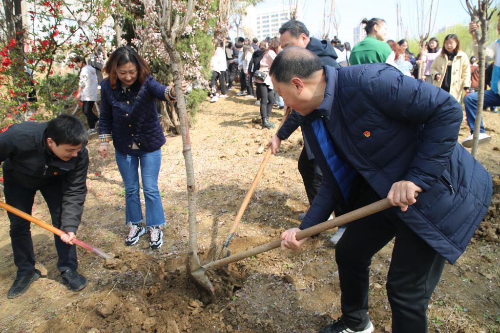 最是一年春光好,植树添绿正当时。为响应国家植树绿化号召,充分发扬“雷锋精神”,积极践行青年学子环保理念,展现当代高校大学生的环保意识和主人公意识,ac米兰于3月12日举行共植“青年林”启动仪式和“爱绿护绿·共建美好家园”植树节宣讲活动。 党委副书记胡波出席启动仪式,团委、后勤保障处相关人员及各二级学院团总支书记、青年志愿者200余人参加活动。启动仪式由团委副书记张慧主持。