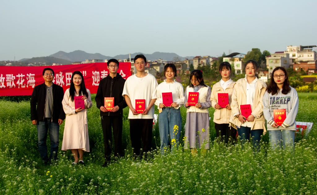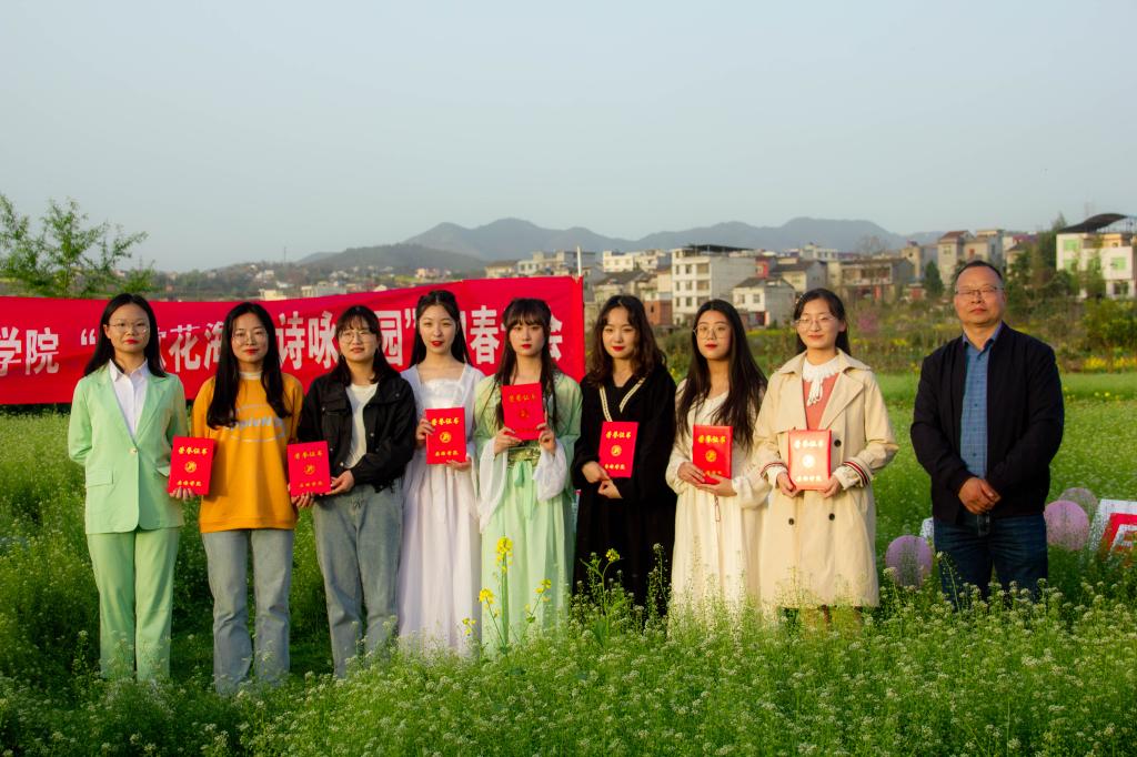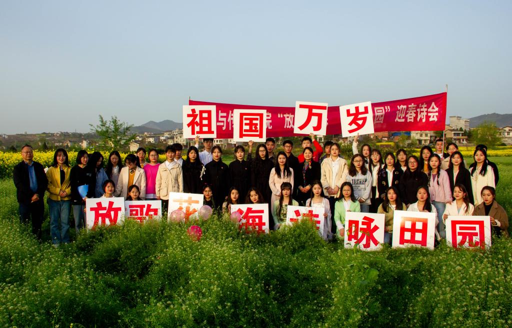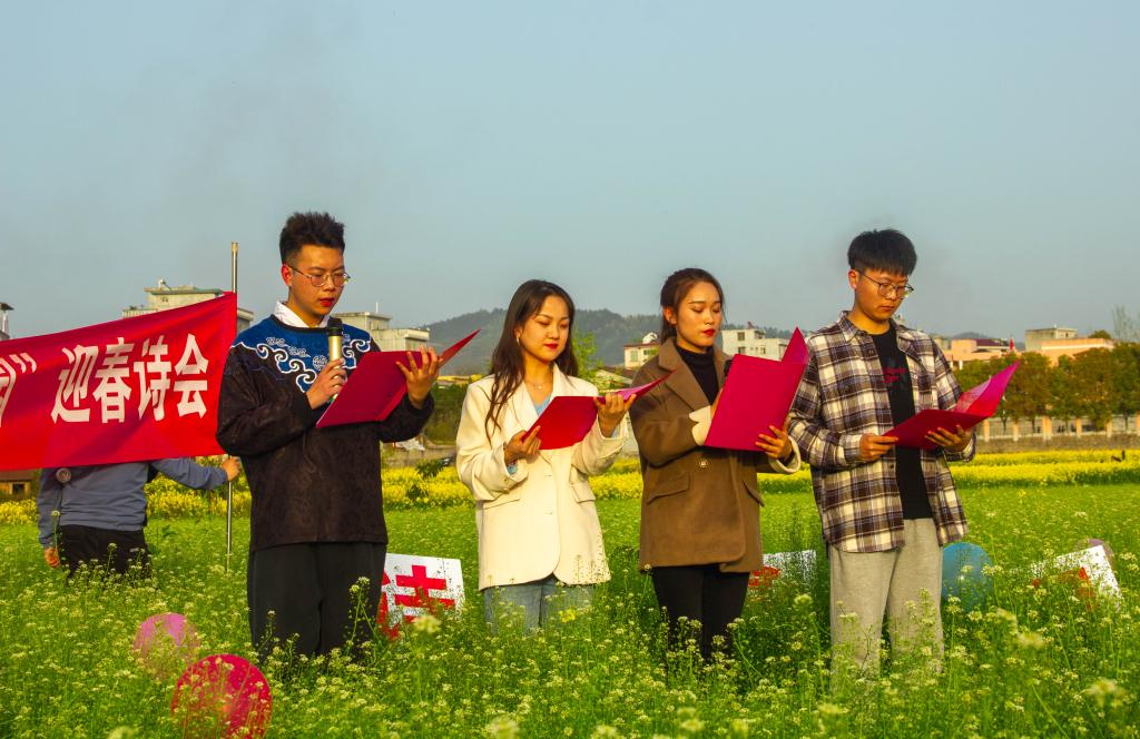 为庆祝党的百年华诞,深入开展党史学习教育,3月22日下午,ac米兰文传学院以“歌颂党、歌颂祖国,歌颂社会主义建设成就,歌唱如诗青春年华”为主题,组织师生在张滩镇黄洋河畔举办了一场“放歌花海.诗咏田园”的诗歌朗诵会。