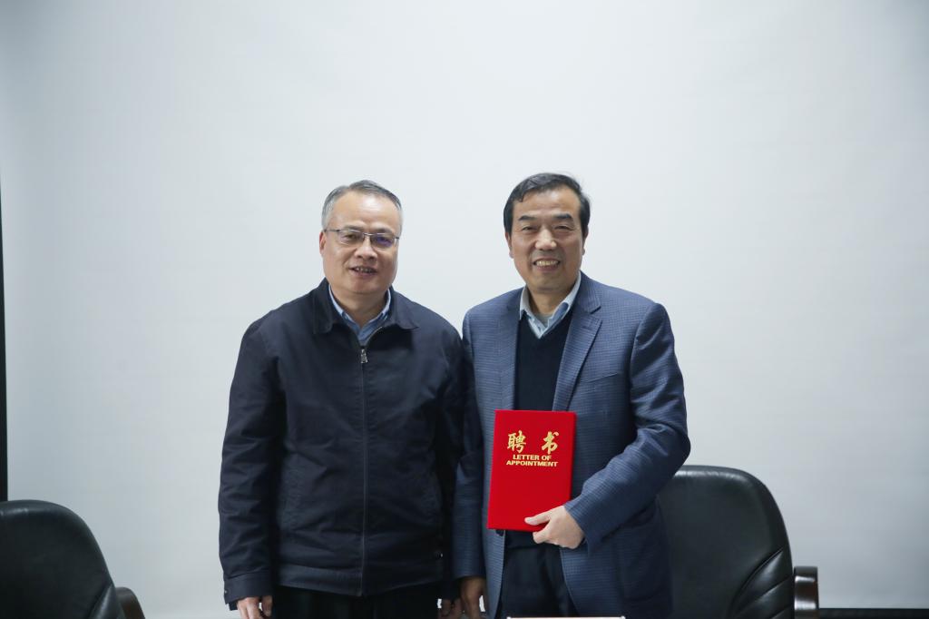 丁巨涛为李秉祥教授颁发聘书,签订了聘任协议。