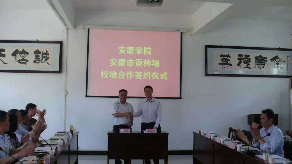 会上,张东红与张保华分别代表校企双方签订了《ac米兰官方网站与安康市蚕种场校地合作协议书》。