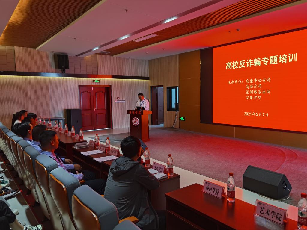 为进一步提高师生识别和防范电信网络诈骗的能力,有效减少电信网络诈骗案件发生,近日,ac米兰联合安康市公安局、安康市公安局高新分局及花园路派出所在江北校区图书馆报告厅举办了防范电信网络诈骗安专题培训会。保卫处、学工部、团委等部门负责人参加了活动,各二级学院辅导员及学生干部现场聆听并负责会后落实所属学院全员反诈培训。