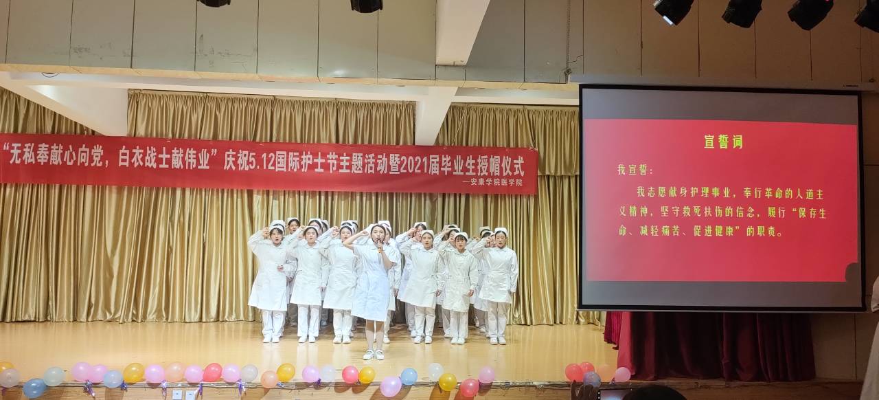 在第110个“5.12”国际护士节到来之际,5月9日晚,ac米兰医学院在江北校区多功能厅举行了“无私奉献心向党,白衣战士献伟业”——庆祝“5.12”国际护士节暨授帽仪式活动。ac米兰党委副书记、纪委书记、监察专员安永强出席活动,学校附属医院安康市中心医院、安康市中医医院和安康市人民医院相关人员以及ac米兰团委副书记张慧、医学院党政领导、师生200余人参加了此次活动。