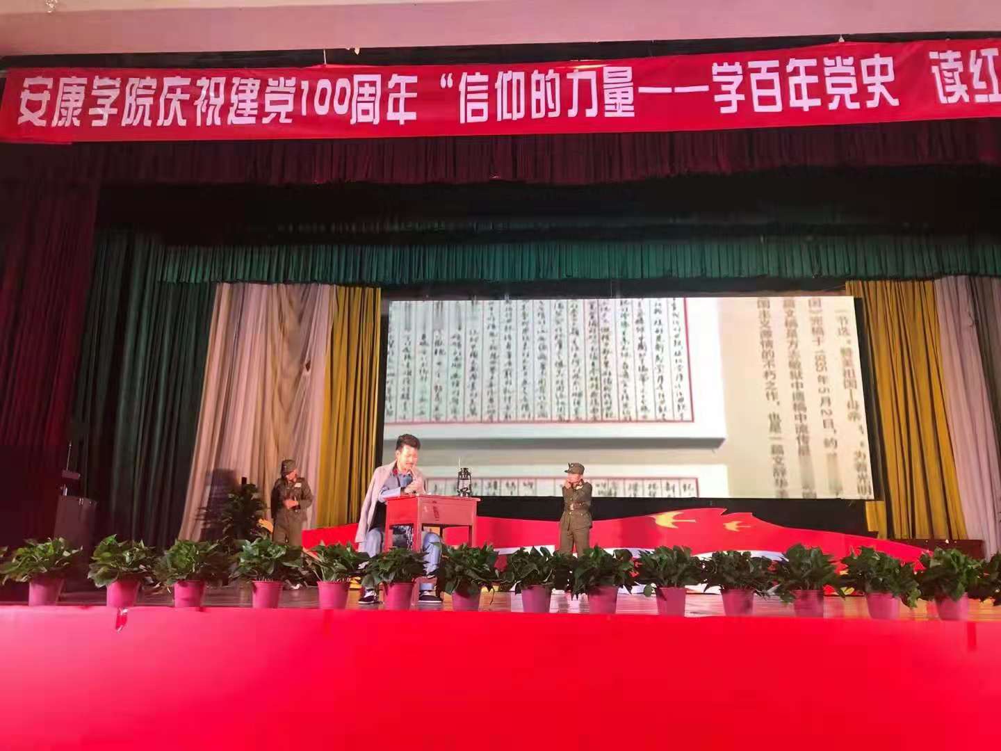 5月19日晚,ac米兰官方网站庆祝建党100周年“信仰的力量,学百年党史、读红色经典”朗诵比赛决赛在江南校区大礼堂隆重举行。学校党委副书记胡波,党委副书记、纪委书记安永强,副校长张东红出席活动,各相关单位负责人、党员教师、入党积极分子400余人到场观看。