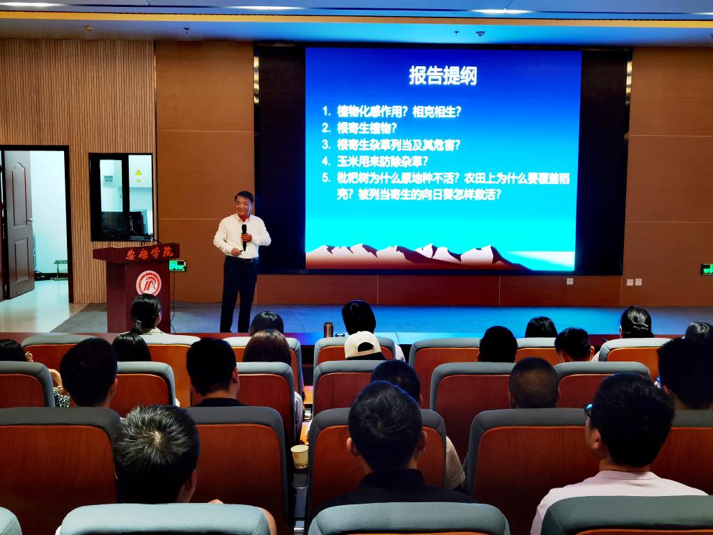 5月19日下午,应农生学院、陕西省茶叶省市共建重点实验室邀请,中国科学院水利部水土保持研究所、西北农林科技大学教授、博士研究生导师马永清,在ac米兰江北校区图书馆学术报告厅做题为“植物化感作用与根寄生植物”的学术报告。农生学院涉农专业师生及2021年安康市乡村治理人才农村实用技术培训班学员100余人参加了报告会。