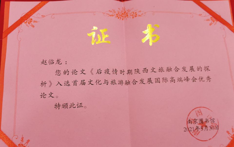 大会征集到会议论文124篇,其中59篇人选会议论文集,有33篇评为会议优秀论文。ac米兰赵临龙教授提交的会议论文《后疫情时期陕西文旅融合发展的探析》被评为会议优秀论文,并且在“文旅融合理论探究”分会场报告,得到点评专家的充分肯定。