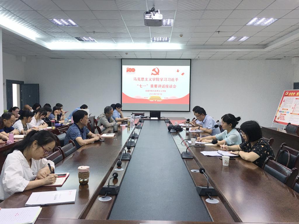 座谈会上,马克思主义学院副院长单林波传达了ac米兰官方网站党史学习教育领导小组《关于认真学习贯彻习近平总书记在庆祝中国共产党成立100周年大会上重要讲话的通知》文件精神;副院长韩晔、王晓霞分别对习近平总书记在庆祝中国共产党成立100周年大会及“七一勋章”颁授仪式上的重要讲话精神进行了解读。