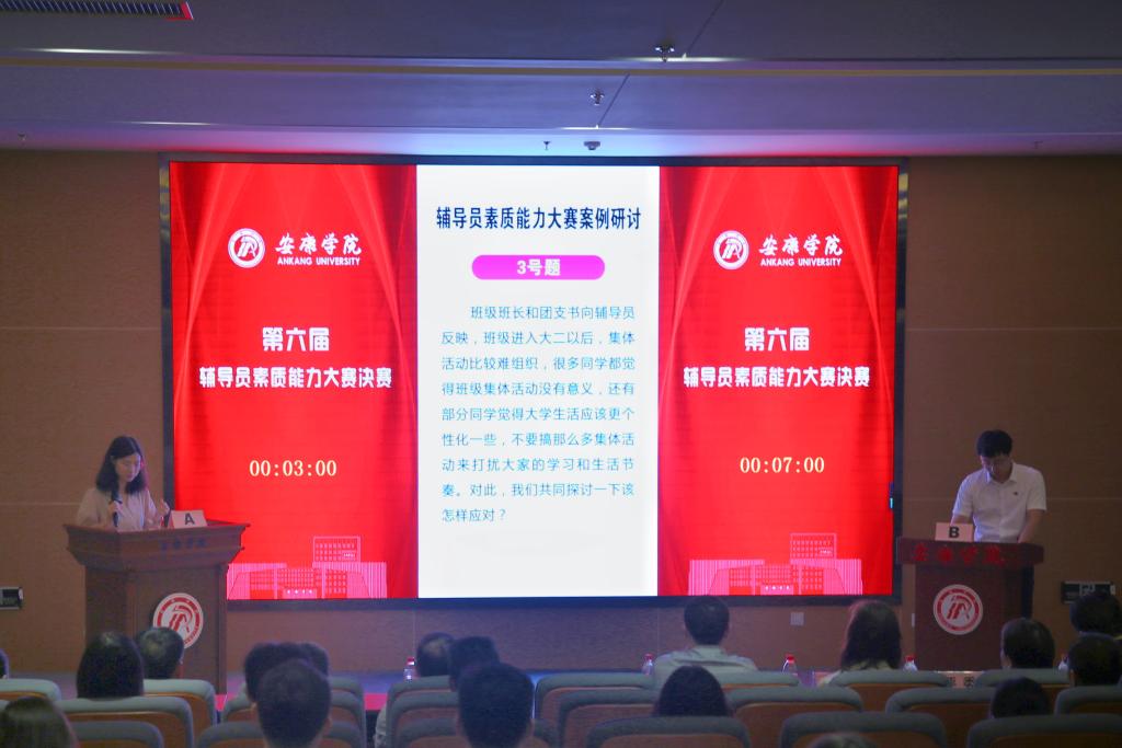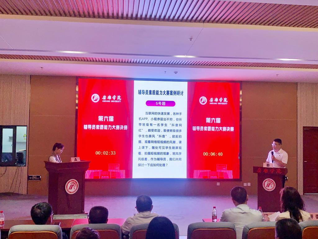 辅导员素质能力大赛分为初赛与决赛两个部分,初赛采用基础知识测试,并经二级学院推荐及案例分析测评等环节,从ac米兰42名辅导员中遴选6名辅导员进入决赛。决赛包括案例研讨和谈心谈话两个环节。参赛辅导员以较强的专业水准生动演绎了辅导员在平凡岗位上不平凡的工作状态,彰显了ac米兰辅导员队伍的建设水平和整体素质。