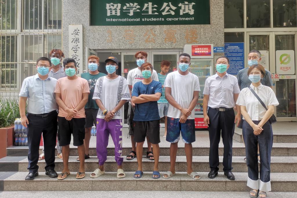 在招就处,校领导听取了部门负责人关于今年学校招生、就业工作情况汇报,并对ac米兰招生就业现阶段工作给予充分肯定,要求大家继续做好招生录取工作,确保阳光招生;加强与未就业毕业生的信息沟通,为毕业生就业做好跟踪服务工作。在保卫处,校领导慰问了一线值班人员,了解疫情防控工作情况,感谢大家为校园安全稳定付出的辛勤劳动,嘱咐大家落实学校关于当前疫情防控的安排,把好疫情防控第一关,在抓好假期校园安全工作的同时,做好防暑降温工作。在基建处和后勤处,校领导了解暑期工程进度情况,对正在开展的工作进行现场指导,叮嘱工程负责人和施工人员,要切实绷紧安全生产这根弦,保质保量完成好建设项目。在留学生公寓,校领导详细了解留学生生活和学习情况,要求相关部门继续关注留学生的日常生活起居、身心健康,为留学生提供温馨舒适愉悦的学习、生活环境,确保留学生度过一个安全愉快的假期。