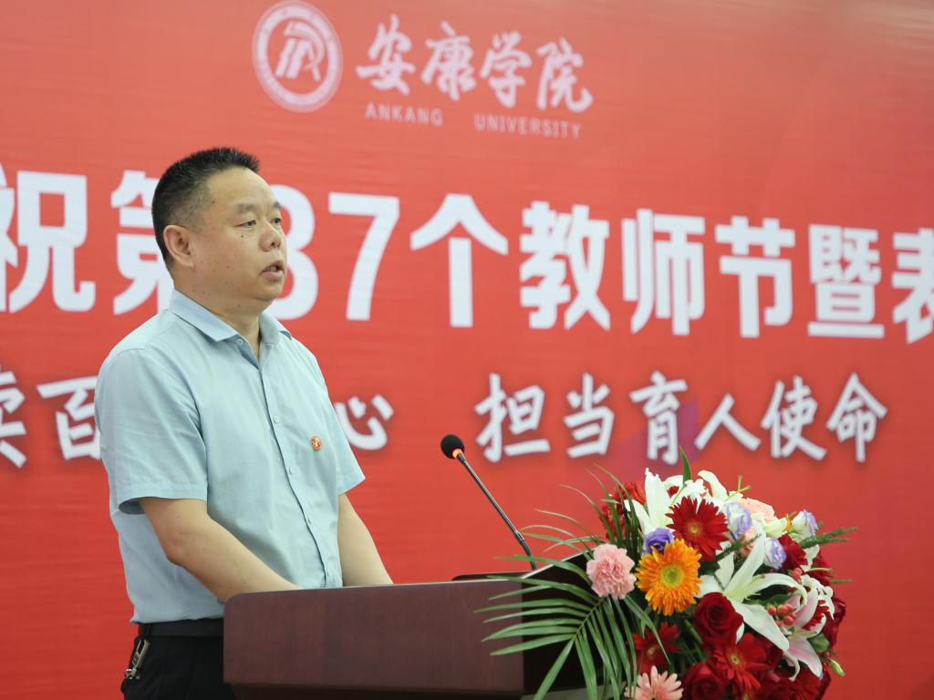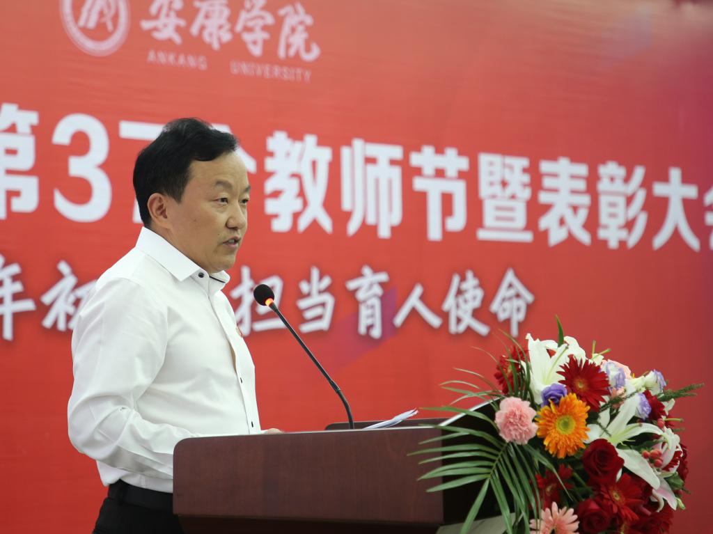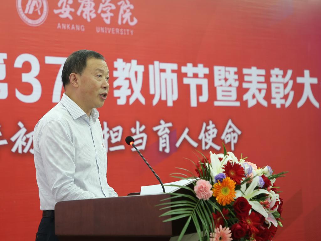 党委书记丁巨涛代表学校党委和行政,向学校全体教职员工致以节日的问候,向受到表彰的先进集体、先进个人表示热烈的祝贺,向今年新加入ac米兰官方网站的53名新教师表示诚挚的欢迎。他结合学习习近平总书记关于教育工作重要论述的思考,谈了四点体会。恪守师德规范,牢记和落实立德树人根本任务。每位教职员工要做到“明大德、守公德、严私德”。立足岗位,认真践行现代大学基本职能。每位教师都要把站好讲台作为一生的追求,把提升教学水平作为一生的必修课;潜心研究,选准科研方向,组建科研团队,提高科研能力;紧扣安康建设西北生态经济强市发展目标,主动对接乡村振兴战略、安康主导产业发展等需求,深入行业企业开展产学研调研与合作,进一步提升服务地方经济社会发展的能力和水平。坚持“办学以教师为本”理念,全心促进教师发展。学校的管理、服务人员要牢固树立依靠教师、服务教师的工作理念,用实实在在的行动为教师做好服务。深入推进“我为群众办实事”实践活动,把党史学习教育同解决师生实际问题结合起来,从最突出的问题抓起、从最现实的利益出发,下实功、办实事,高质量完成“我为群众办实事”各项任务,切实解决师生“急难愁盼”问题,不断增强师生获得感和幸福感。进一步丰富宣传形式,挖掘我们身边爱岗敬业、乐于奉献的典型,大力宣扬在教书育人一线工作中涌现出的先进,充分发挥先进的引领作用,引导更多的教师见贤思齐,提高教师队伍整体水平;完善教师专业成长的激励机制。狠抓落实,奋力推动既定发展目标顺利实现。落实党史学习教育第二阶段任务,牢牢抓住落实认真学习贯彻习近平总书记在庆祝中国共产党成立100周年大会上重要讲话精神的政治任务不放松;牢牢抓住深入开展“我为群众办实事”实践活动各项目标举措不放松;牢牢抓住落实目标任务清单和“十四五”目标任务,以高质量党建推动学校高质量发展不放松。要以建功必须有我的历史担当、功成不必在我的胸怀境界,咬定目标不放松、撸起袖子加油干,进一步凝聚强大合力,在“落实”上狠下功夫,低调、务实、勤奋、扎实有效推进各项工作。坚持目标导向和问题导向,奋力做好教学科研、社会服务和内部管理服务等工作;对标规划目标和任务,主动作为,克难攻坚,一件件抓好落实,推动“十四五”规划蓝图变为现实。