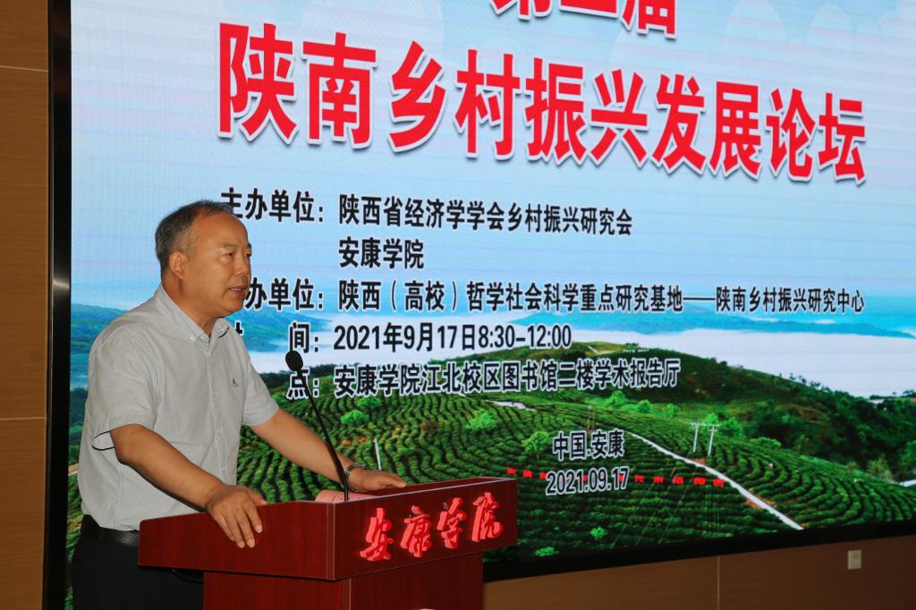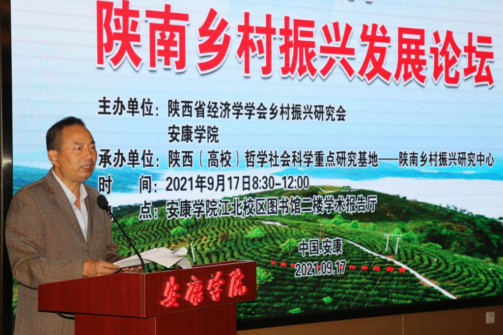 罗新远代表陕西省经济学会乡村振兴研究会致辞。他介绍了陕西省经济学会、陕西省经济学会乡村振兴研究会的发展历程、研究内容等有关情况,肯定了陕南乡村振兴研究中心在产业发展研究、乡村环境治理研究、乡村文化研究等方面取得的成果,希望今后继续加强与陕南乡村振兴研究中心的合作,力争取得更多研究成果,为陕南乡村振兴助力。
