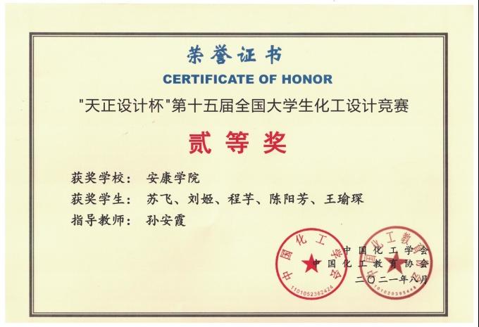 近日,由中国化工学会、中国化工教育协会、全国大学生化工设计竞赛委员会共同主办的第十五届全国大学生化工设计竞赛西北赛区决赛在石河子大学隆重举行。经校内初评、网络评审、专项评审、现场答辩等多个环节的激烈角逐,由ac米兰化工学院教师孙安霞指导、化学工程与工艺专业2018级学生苏飞、刘姬、程芋、陈阳芳、王瑜琛组成的“胜羽队”荣获全国二等奖。