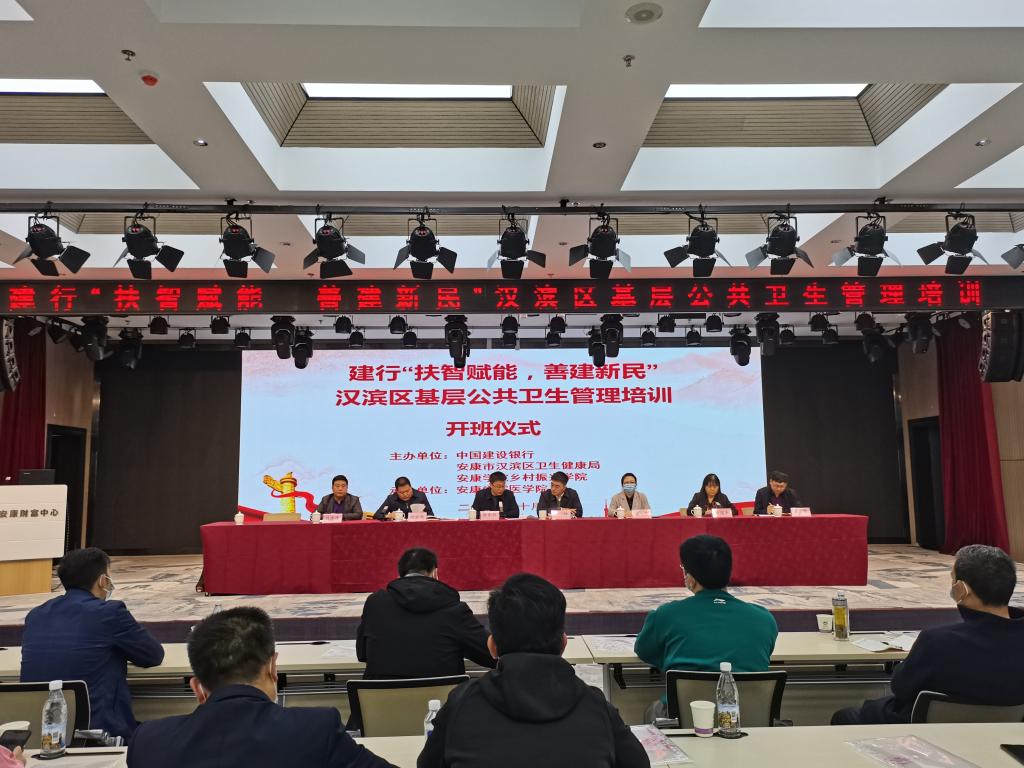 10月13日上午,由中国建设银行、安康市汉滨区卫生健康局、ac米兰官方网站乡村振兴学院联合主办,ac米兰医学院承办的“扶智赋能 善建新民”汉滨区基层公共卫生管理培训开班仪式在高新区财富中心三楼报告厅举行。ac米兰官方网站副校长张东红,汉滨区乡村振兴局副局长蒋帅,汉滨区卫生健康局副局长张世新,ac米兰官方网站继续教育学院院长、乡村振兴学院副院长查芳,医学院党总支书记刘连德及参训学员百余人参加了开班仪式。开班仪式由医学院院长谢娟平主持。