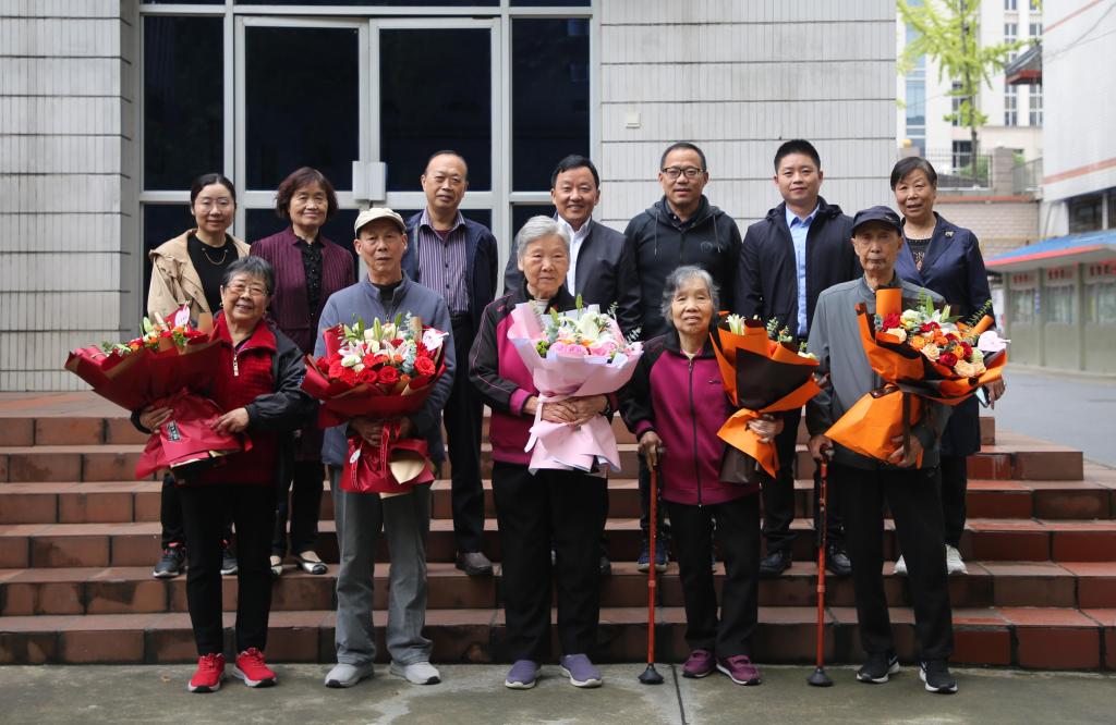会上,青年教师代表向寿星们献花,并与寿星们合影留念。