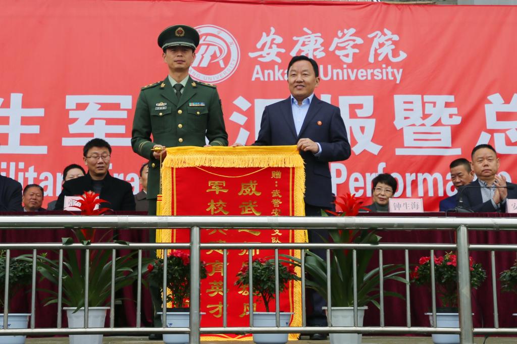 钟生海代表学校向承担本次军训任务的安康武警支队赠送了锦旗。