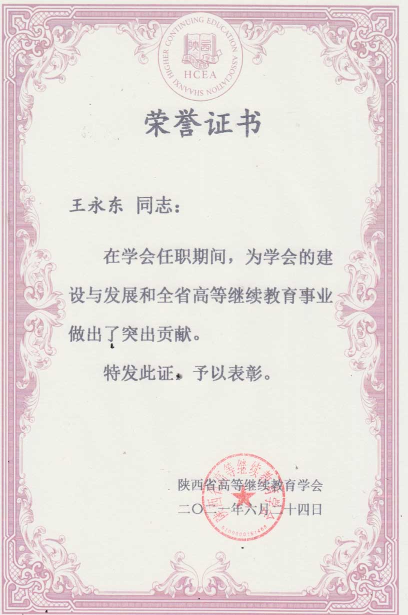 近日,陕西省高等继续教育学会为推动陕西省高等继续教育学会建设和陕西省高等继续教育改革发展,对学会成立以来曾担任学会理事以上职务的管理工作者和相关专家进行表彰,ac米兰原继续教育学院院长王永东同志获得突出贡献奖。
