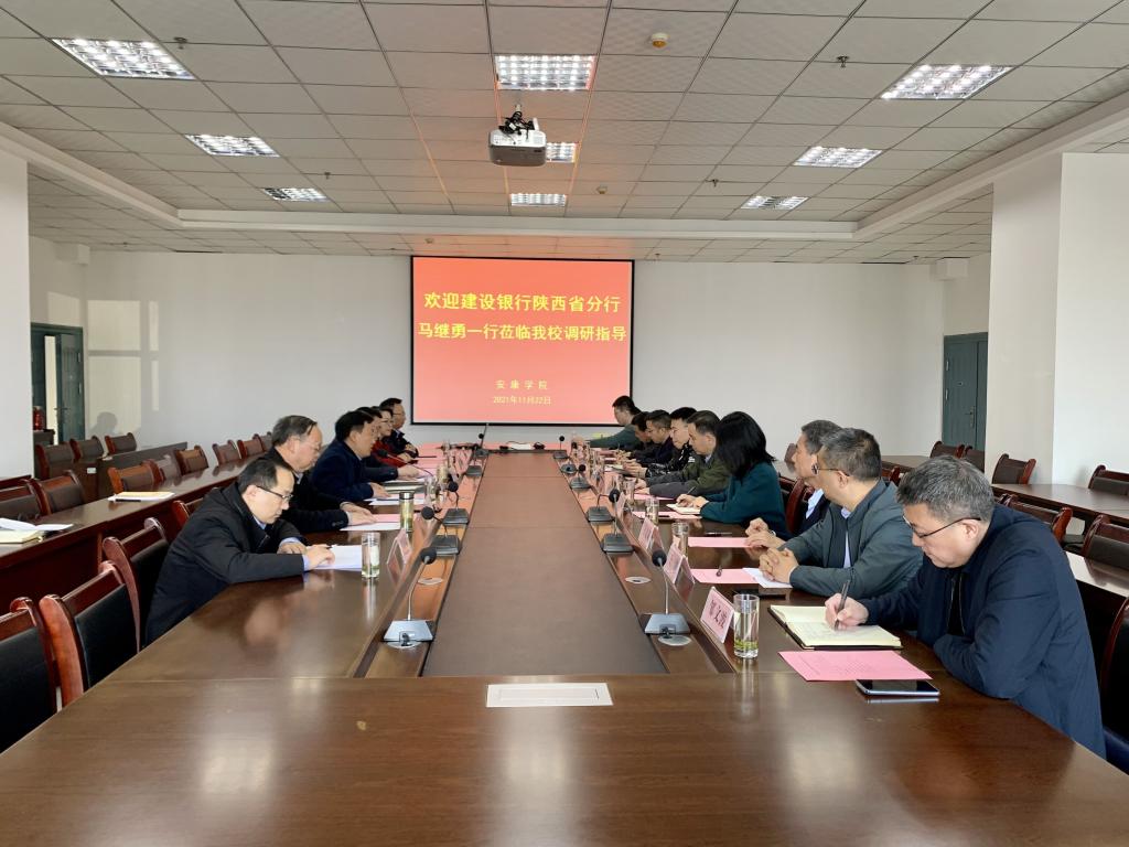 11月22日,建设银行陕西省分行副行长马继勇一行来ac米兰调研共建乡村振兴学院进展情况并召开座谈会。学校校长钟生海,副校长余谦等人出席座谈会,会议由余谦主持。