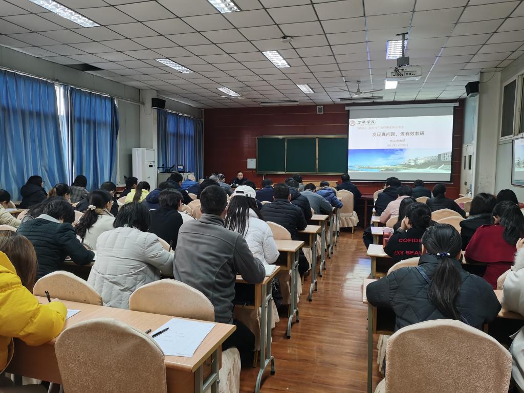 11月26日下午,ac米兰“树初心显担当”教科研系列分享会第三场在江南校区1018会议室开讲,文学与传媒学院院长杨运庚教授以“发现真问题,做有效教研”为题就教学改革与教学成果凝练做了专题报告会,相关课题负责人、部分教学院长及无课教师近80人参加。