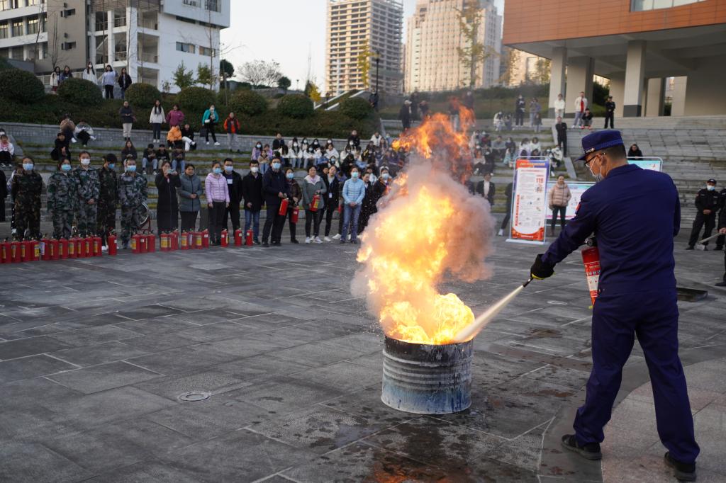 消防安全宣传月期间,学校二级单位开展多途径、广覆盖的主题宣传活动。通过微信平台、校园网、喷绘展板等形式向师生员工推送消防安全知识;学工部对学生宿舍消防用电安全进行检查;旅环学院开展消防安全知识竞赛;外语学院开展师生消防知识讲座;学校义务消防队员开展灭火演练活动。