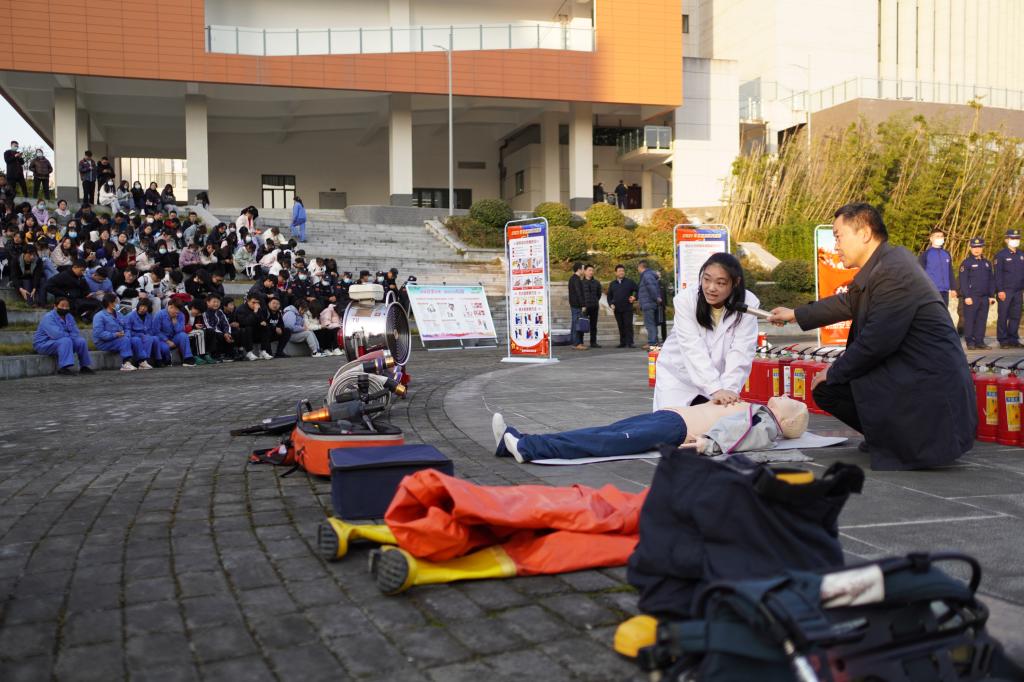 11月18日下午,学校在江北校区湖边广场举行消防安全知识培训暨防火疏散演练活动,校党委副书记胡波做动员讲话;安康市消防救援支队特勤站指战员应邀为ac米兰师生员工做消防救援器材讲解和灭火知识培训;医学院教师做急救知识培训。保卫处、学工部、教务处、后勤保障处、信息化处、农生学院、医学院等二级单位师生及校内服务外包从业人员参加了培训演练。