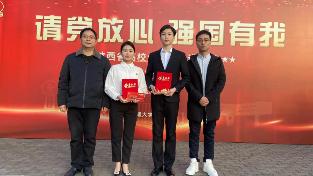 12月2日下午,“请党放心,强国有我”陕西省高校大学生宣讲比赛在西安交通大学兴庆校区举办,ac米兰文学与传媒学院汉语言文学2019级学生杨钰、秘书学2020级学生郭杨获得二等奖。学校党委宣传部部长鲁延安、参赛选手指导教师黄治强出席了颁奖典礼。